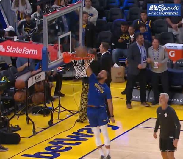 賽前,灣區(qū)媒體曬出庫里熱身時空接暴扣的視頻。