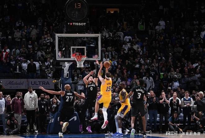比賽還剩6.6秒時(shí),湖人獲得邊線發(fā)球機(jī)會(huì),里夫斯接球后,艾頓迅速上前擋拆。戈貝爾上提,意圖對(duì)里夫斯進(jìn)行大延誤,但里夫斯敏銳捕捉到機(jī)會(huì),果斷。當(dāng)來到罰球線時(shí),面對(duì)迪文琴佐的補(bǔ)防,里夫斯高高拋起籃球,球進(jìn)燈亮,完成壓哨絕殺,湖人就此戰(zhàn)勝森林狼!