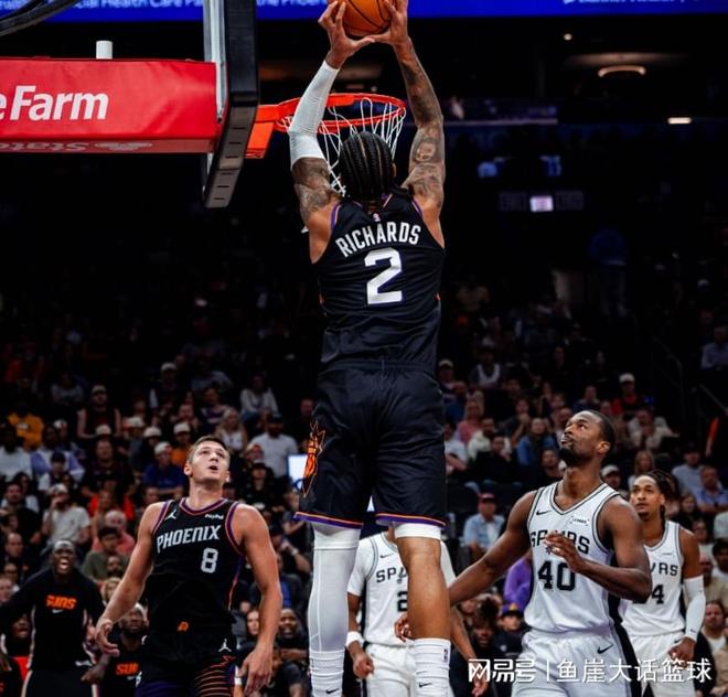 第一節(jié)比賽瓦塞爾中投命中,阿倫命中三分后瓦塞爾投籃繼續(xù)命中,鄧恩命中三分后卡斯?fàn)栔型兜梅?,阿倫扣籃得分后哈珀打成2+1,隨后太陽打出一波6-0,巴恩斯命中三分后太陽又打出一波7-0,哈珀得分止血后伊戈達(dá)羅上籃得分,布克投籃得分后太陽領(lǐng)先到11分。末尾階段馬刺多點(diǎn)開花追近比分,第一節(jié)比賽結(jié)束馬刺落后7分。第二節(jié)比賽理查茲拋投得分,凱爾登上籃得分后理查茲罰球2中2,接下來的比賽馬刺雖然試圖追分,但布克給予回應(yīng)不說,理查茲也在內(nèi)線得分,后續(xù)古德溫、阿倫更是連續(xù)命中三分,太陽也慢慢領(lǐng)先到了17分。末尾階段布克、奧尼爾頂住馬刺反撲,半場比賽結(jié)束太陽領(lǐng)先18分。