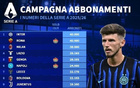 2025-26意甲俱樂部季票銷售排名:國(guó)米、羅馬4萬張并列第一